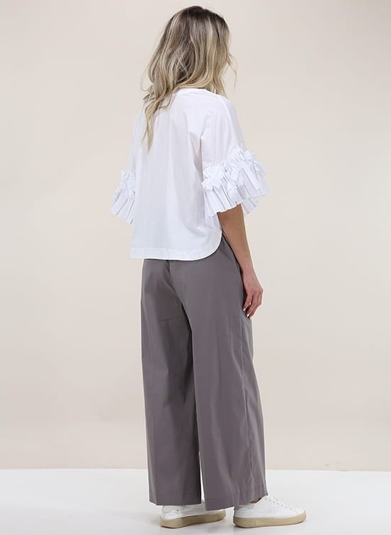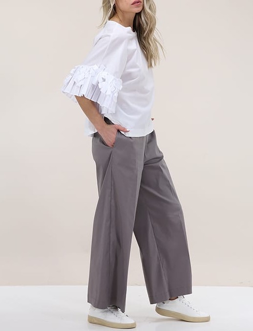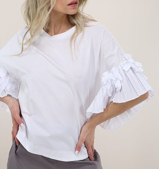 Blusa Meimeij decote redondo mangas plissadas c/laços