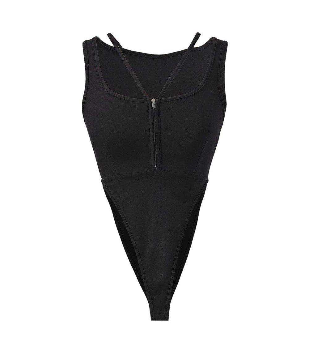 Body VDR decote em V alças duplas e fecho de correr frontal