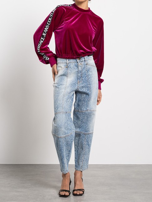Blusa Versace Jeans Couture veludo com cordão em baixo