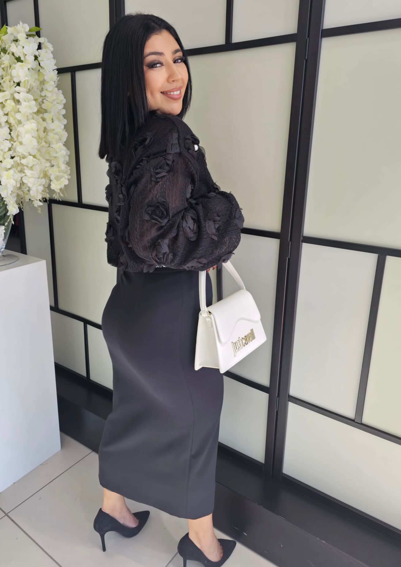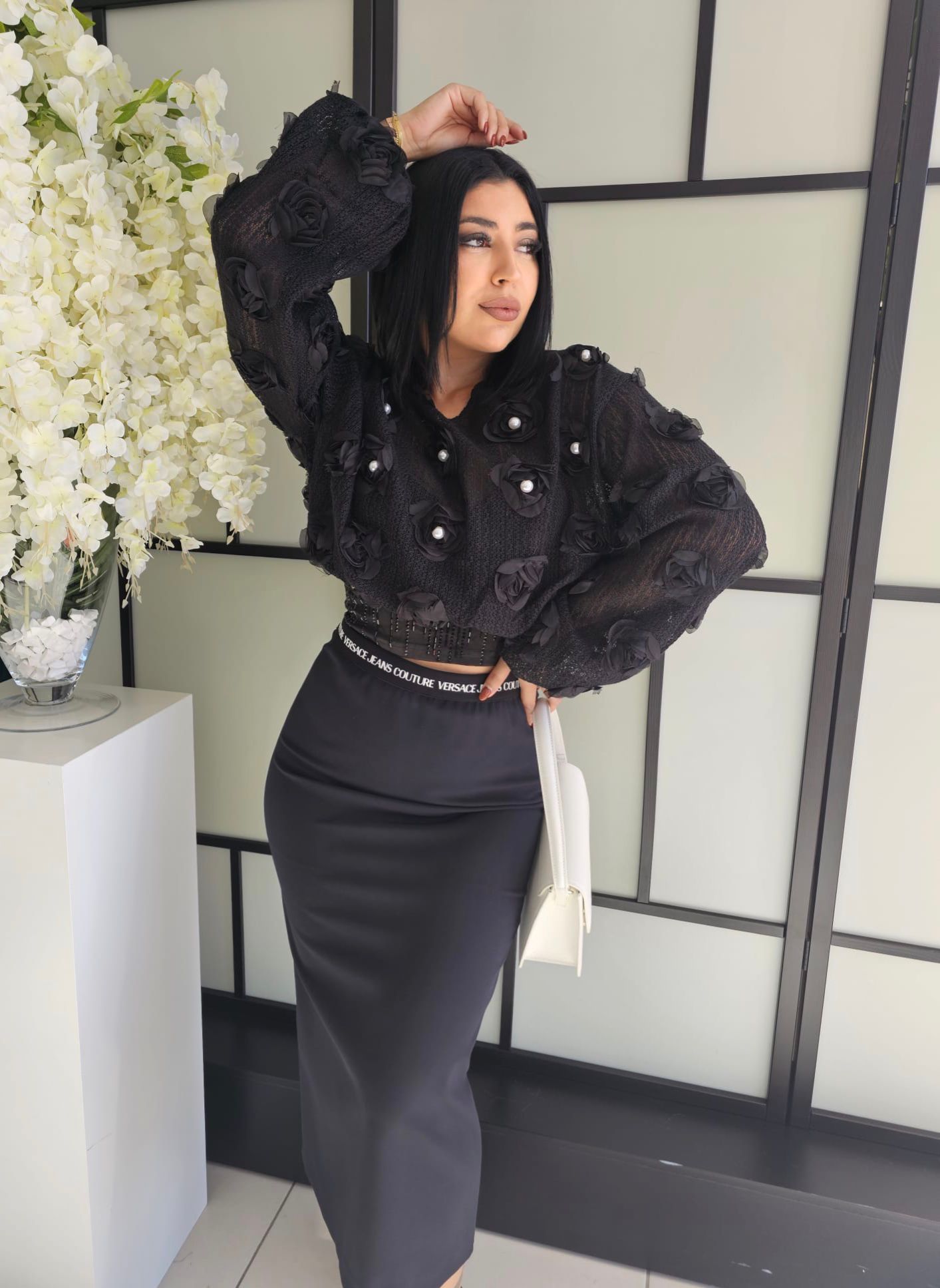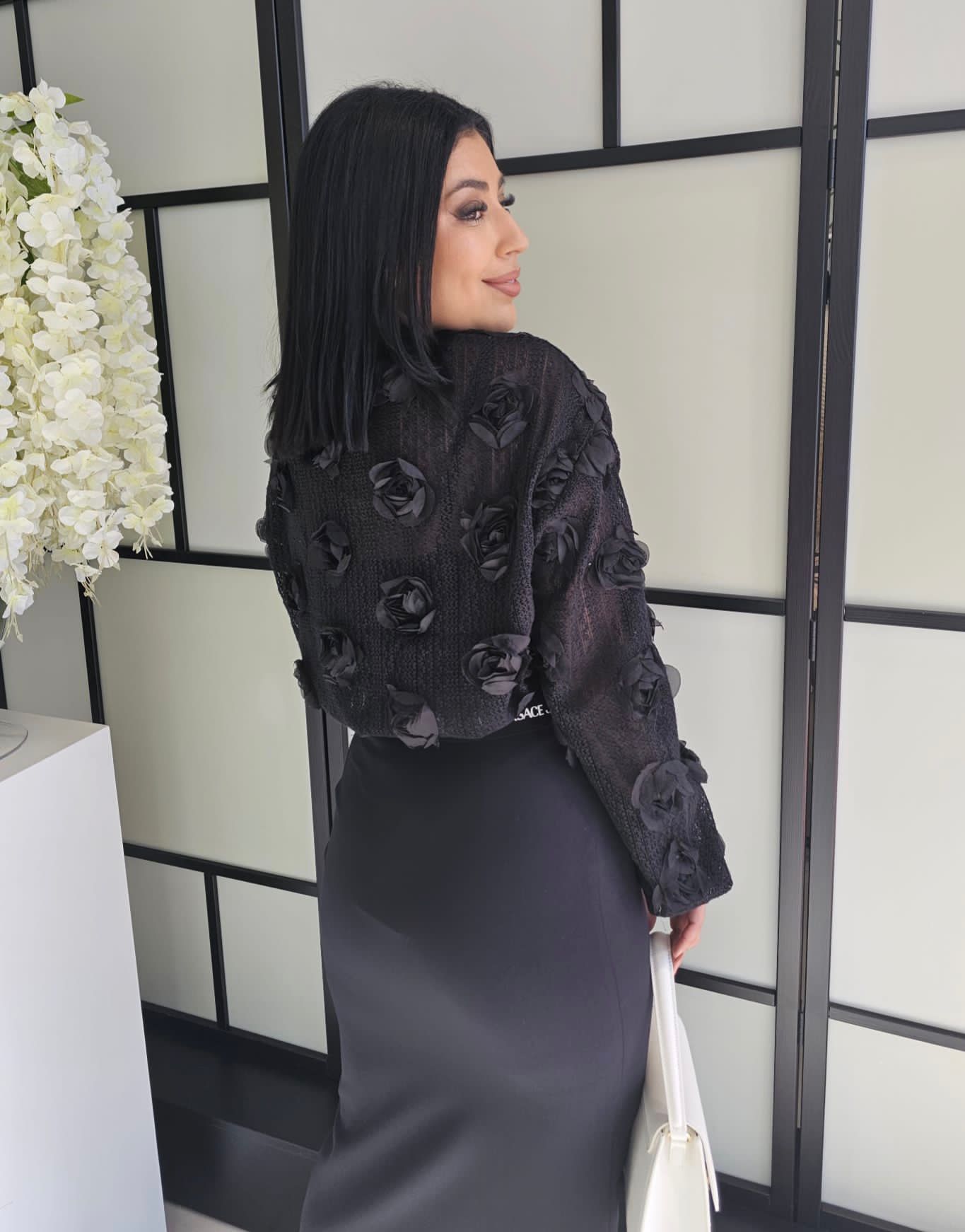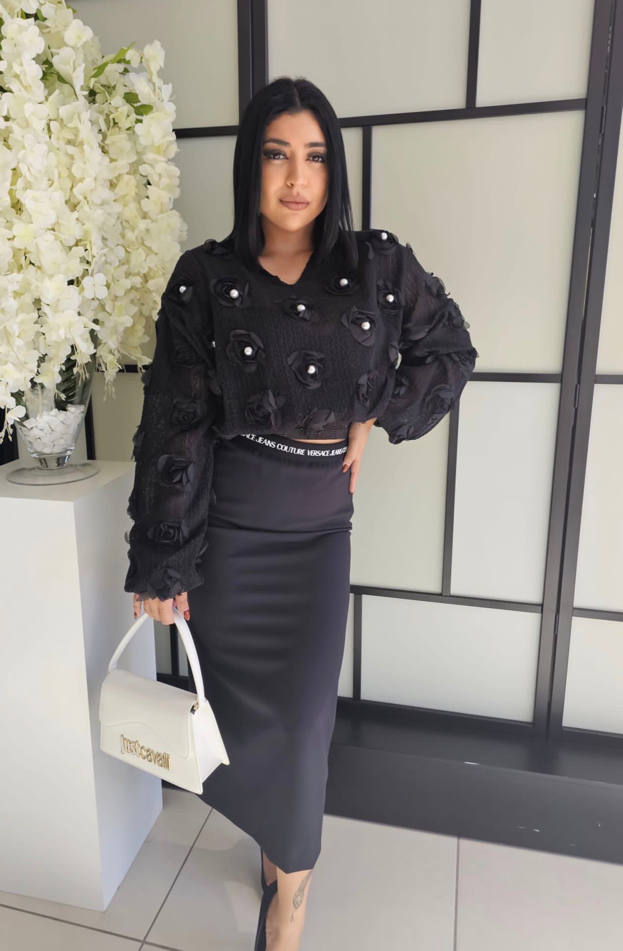 Blusa Marisa Mole de malha com flores alto relevo e perolas