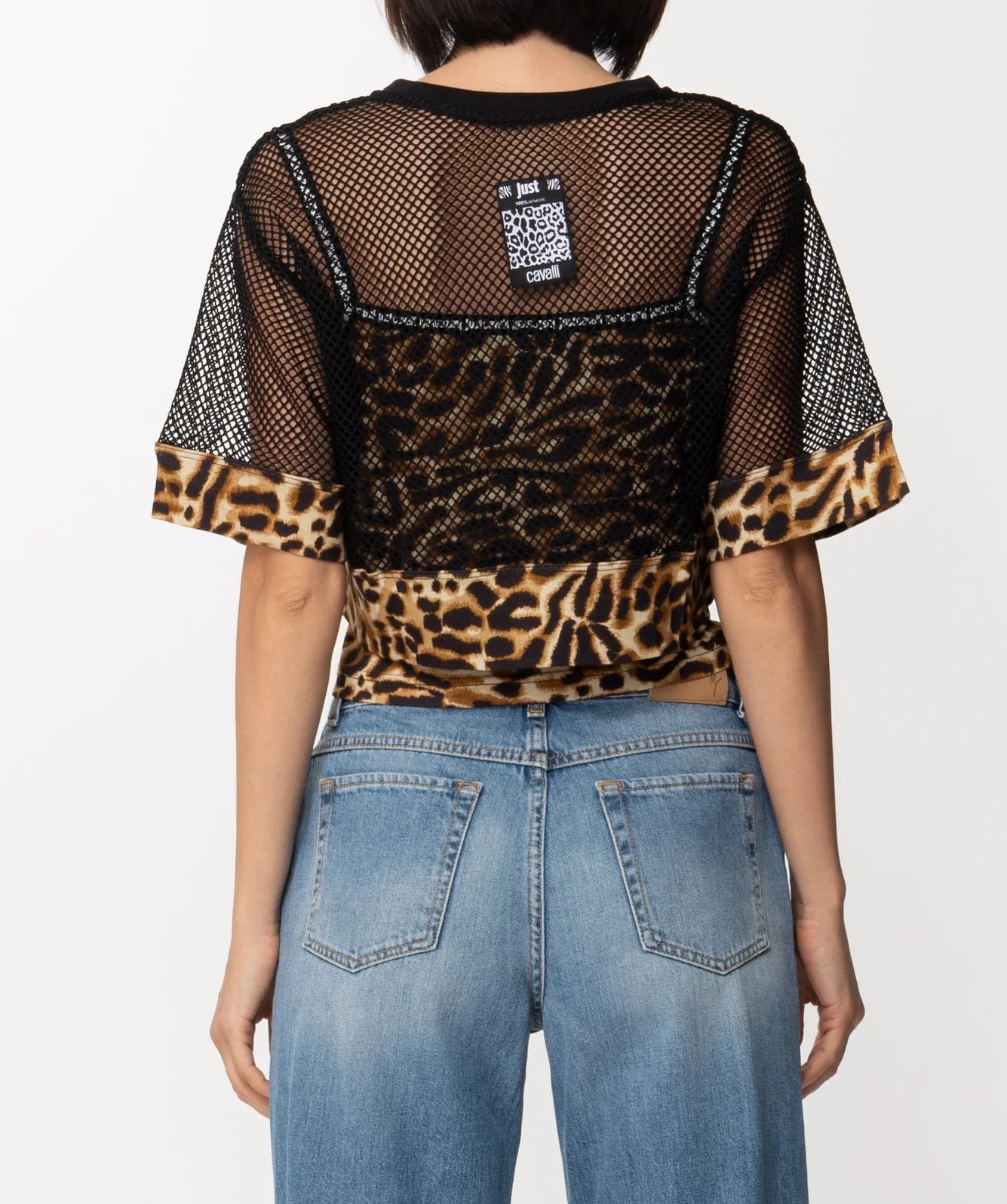 Blusa Just Cavalli dupla perfurada estampa leopardo