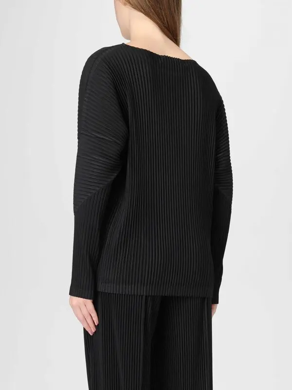 Calça Meimeij pantalona elástico na cintura plissado sanfona e nervura frente e costas