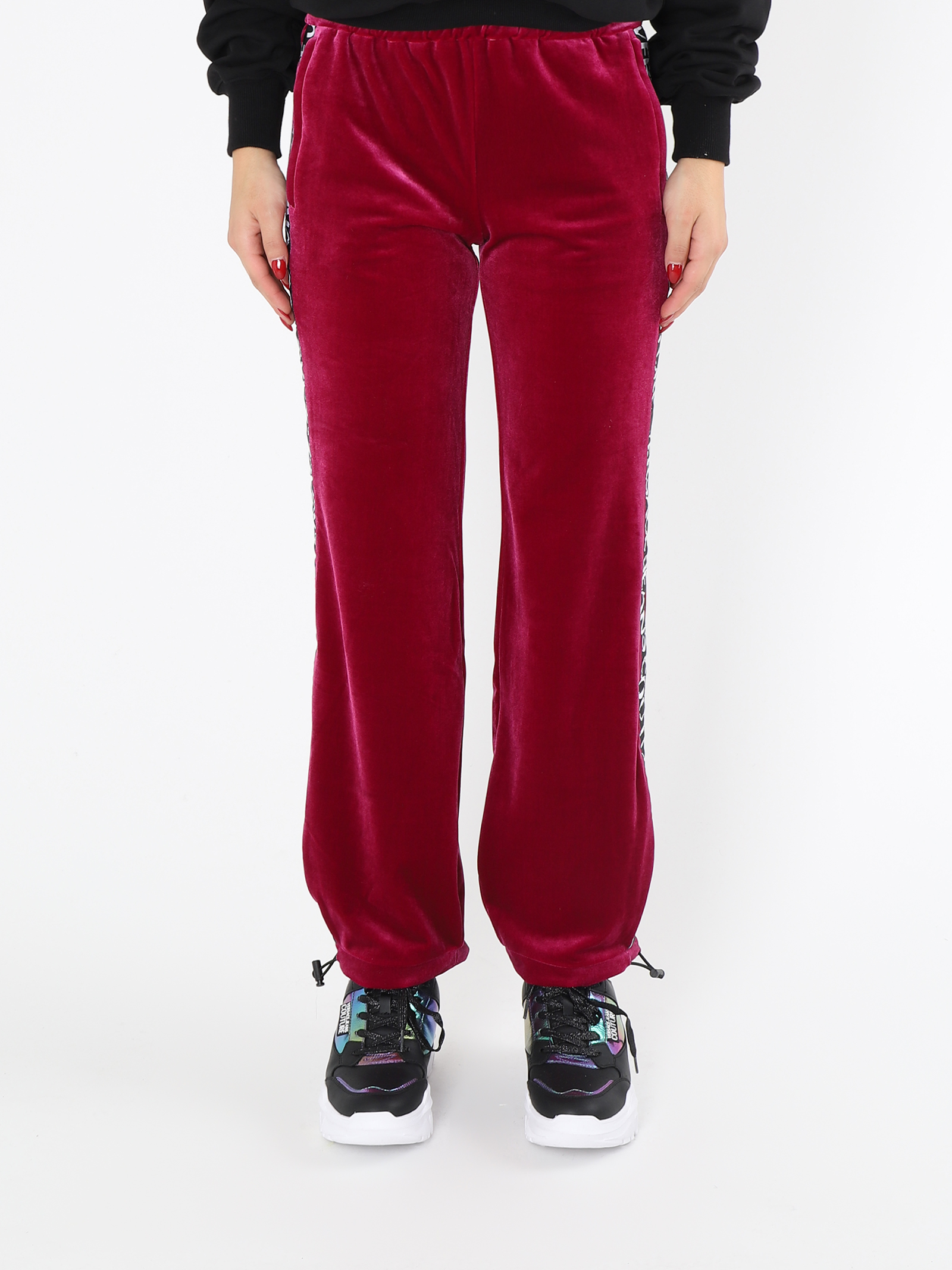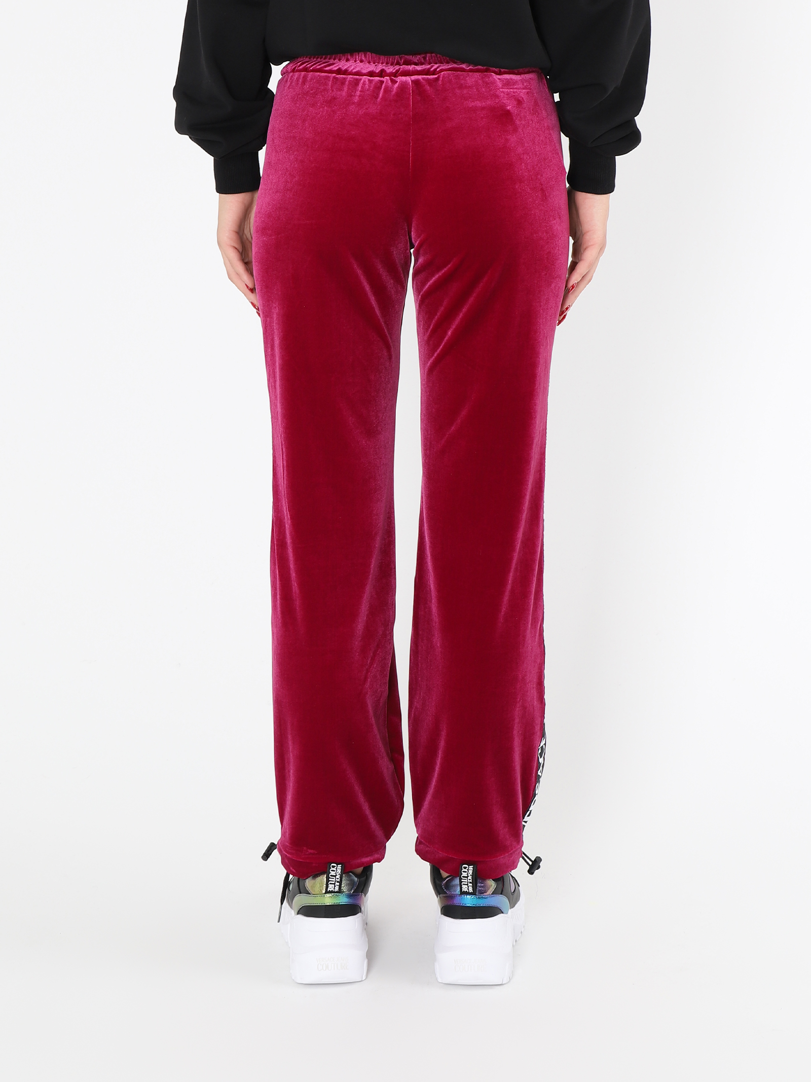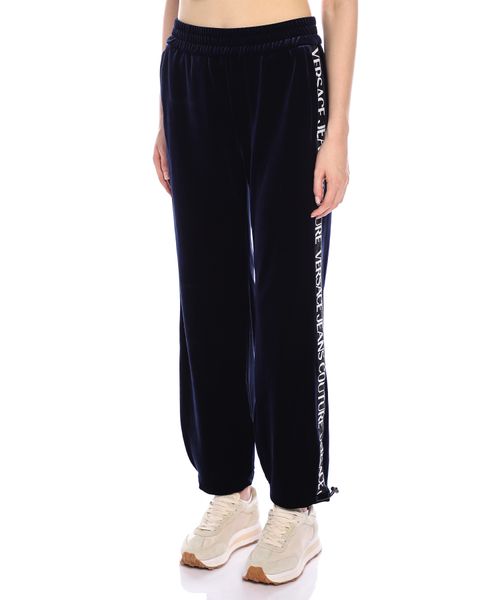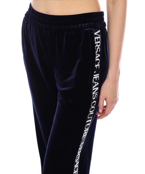 Calça Versace Jeans Couture veludo com letras brancas de lado