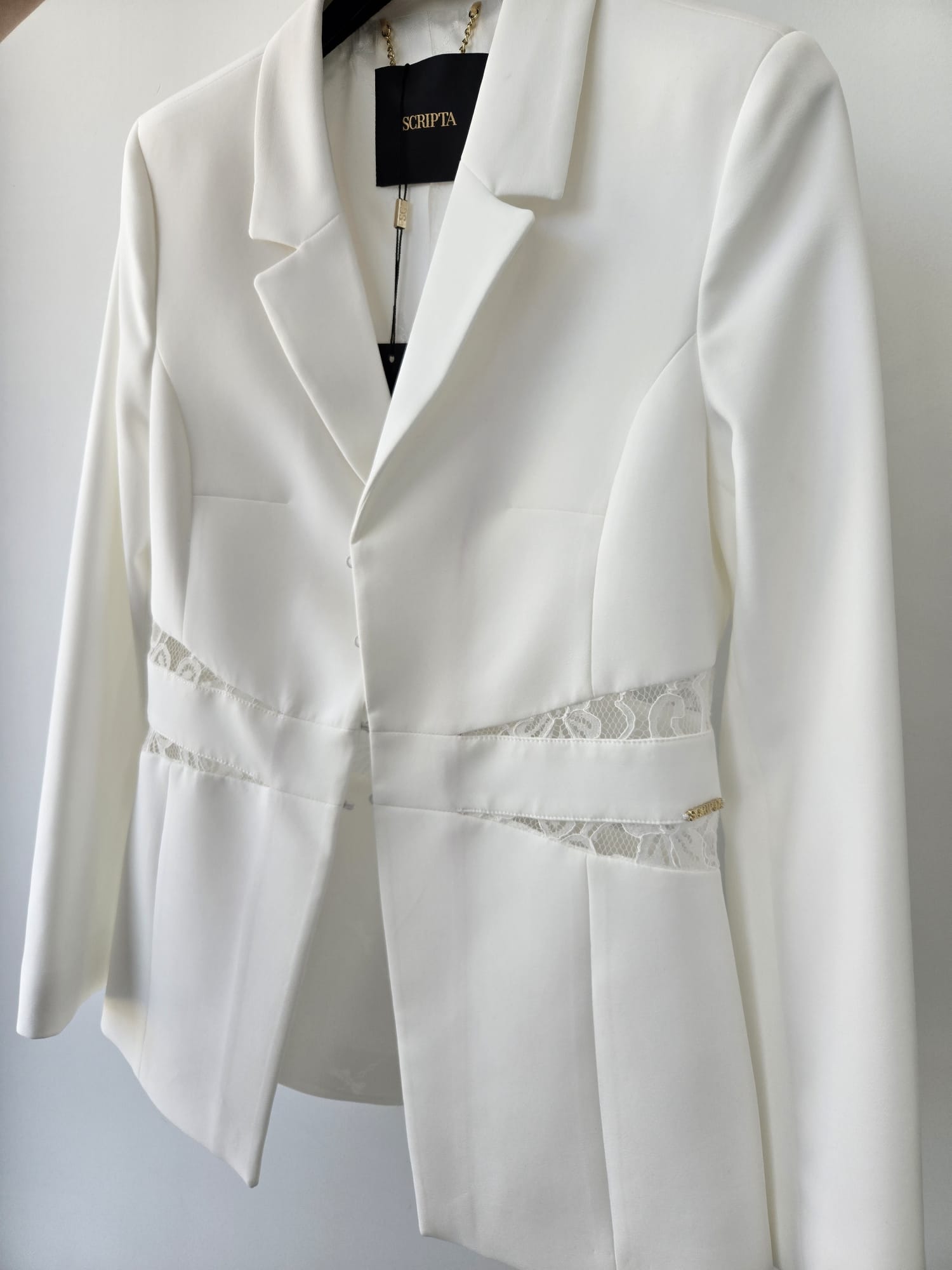Blazer Scripta com detalhe de renda na cintura