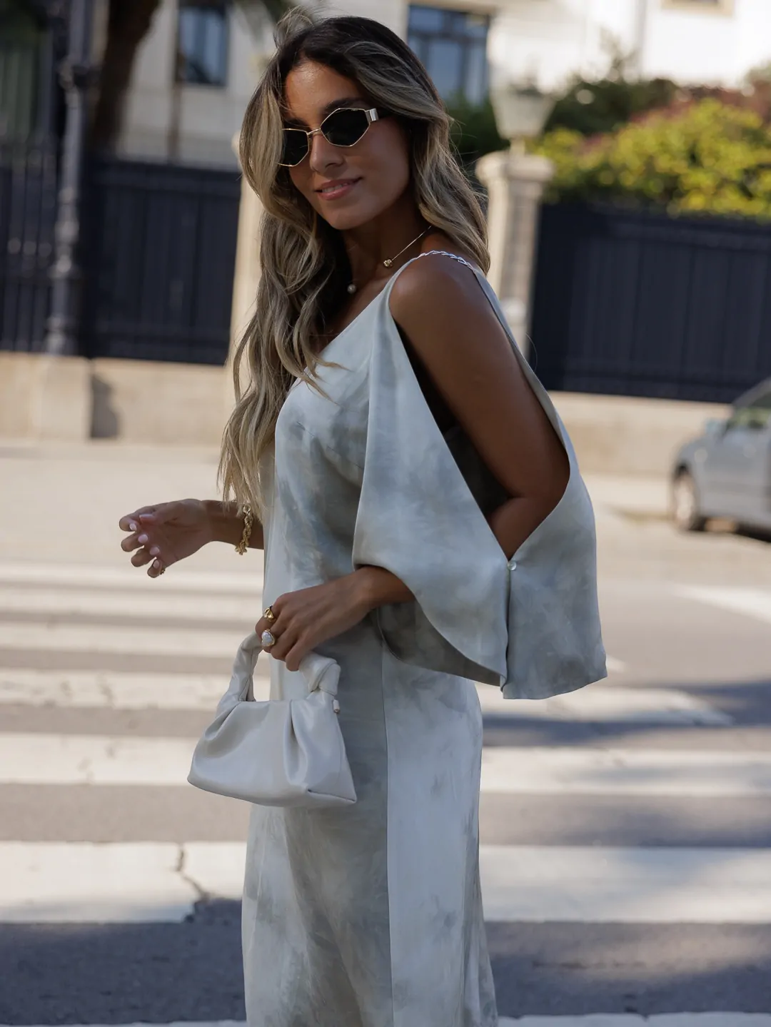 Vestido Scripta tie dye alça de corrente