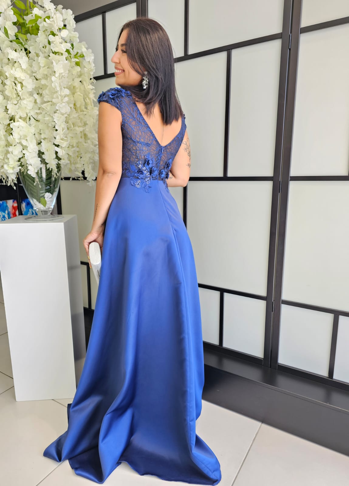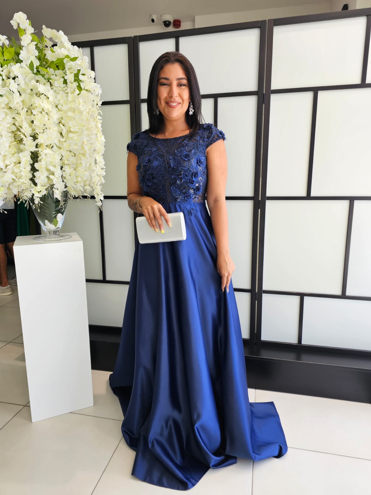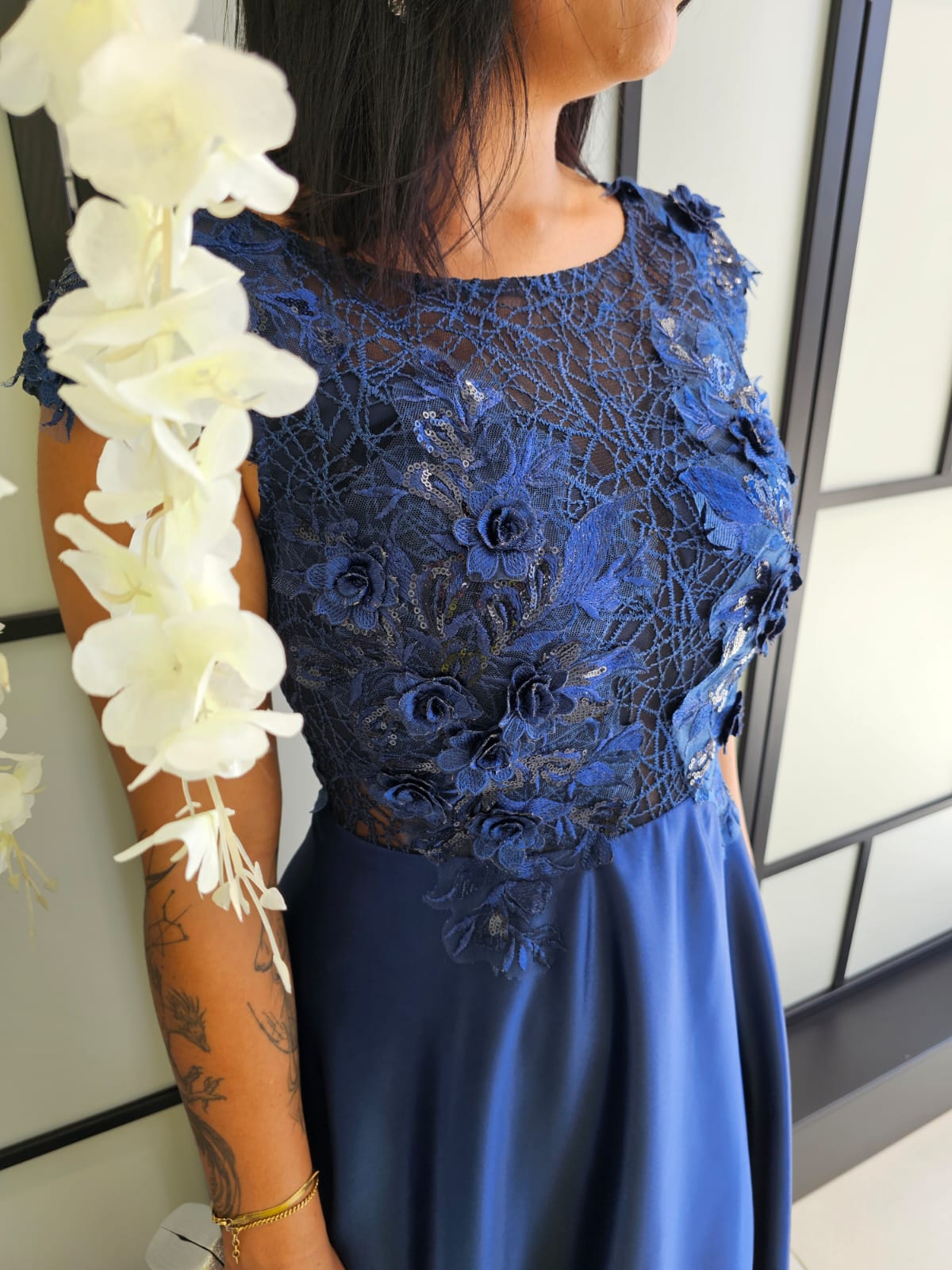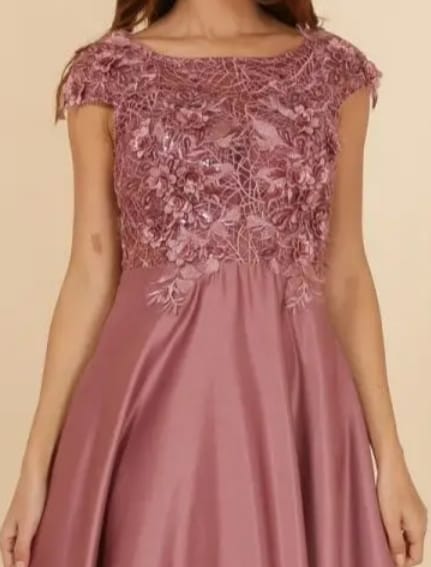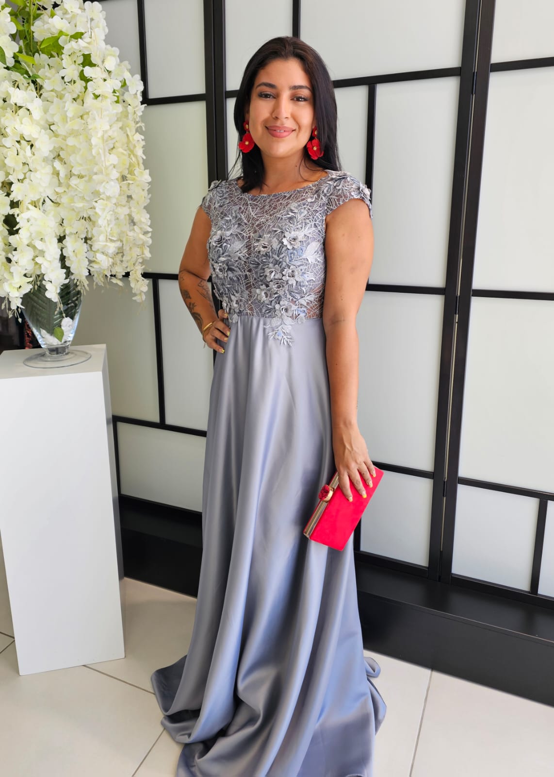 Vestido Marisa Mole saia cetim grosso e peito em renda