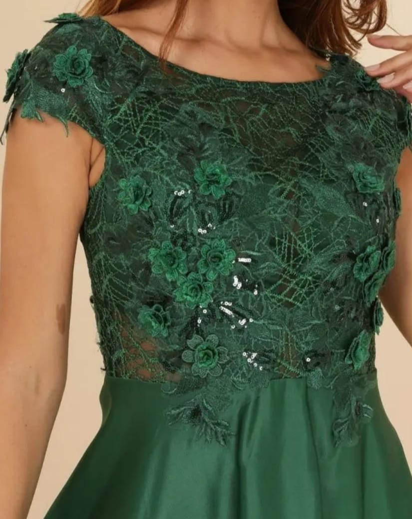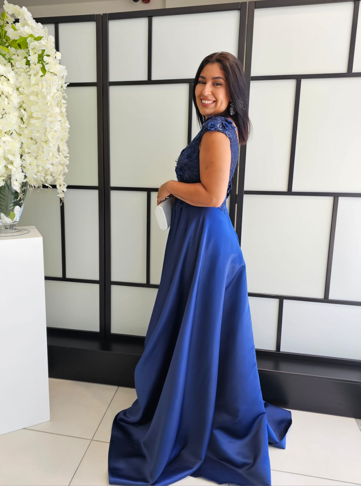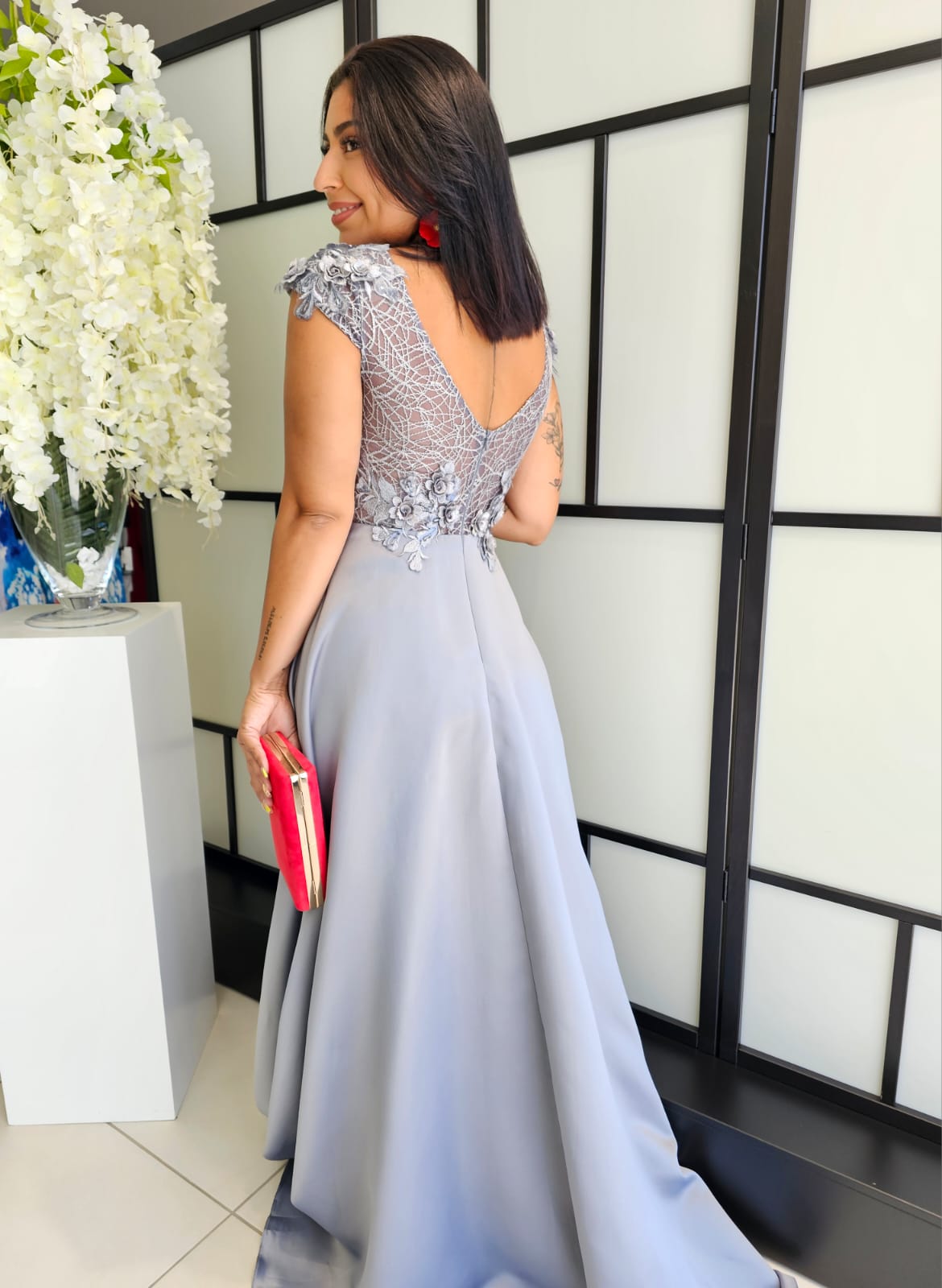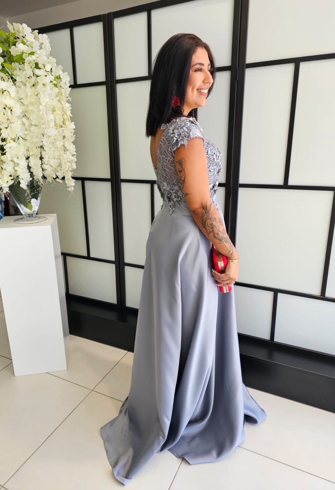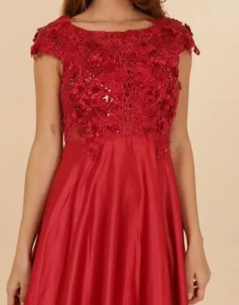 Vestido Marisa Mole saia cetim grosso e peito em renda