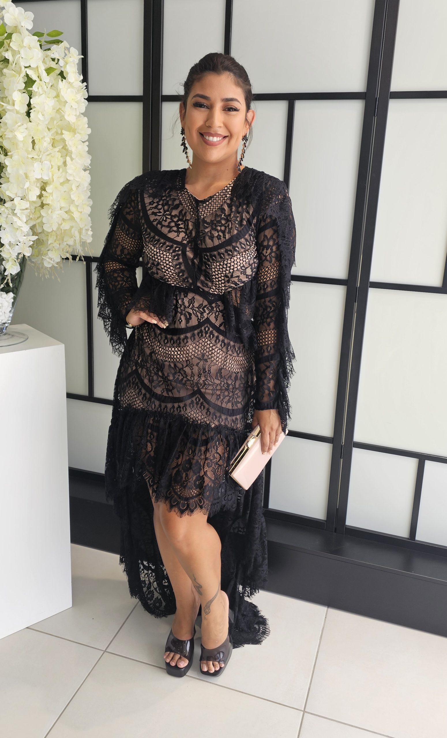 Vestido Marisa Mole forro nude e renda preta aberto nas costas