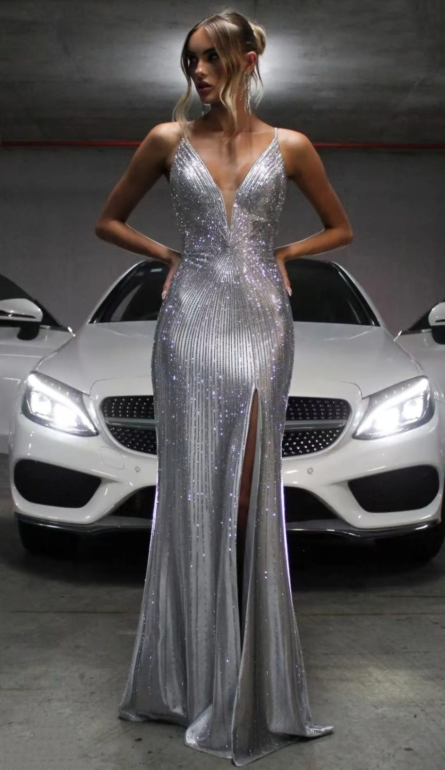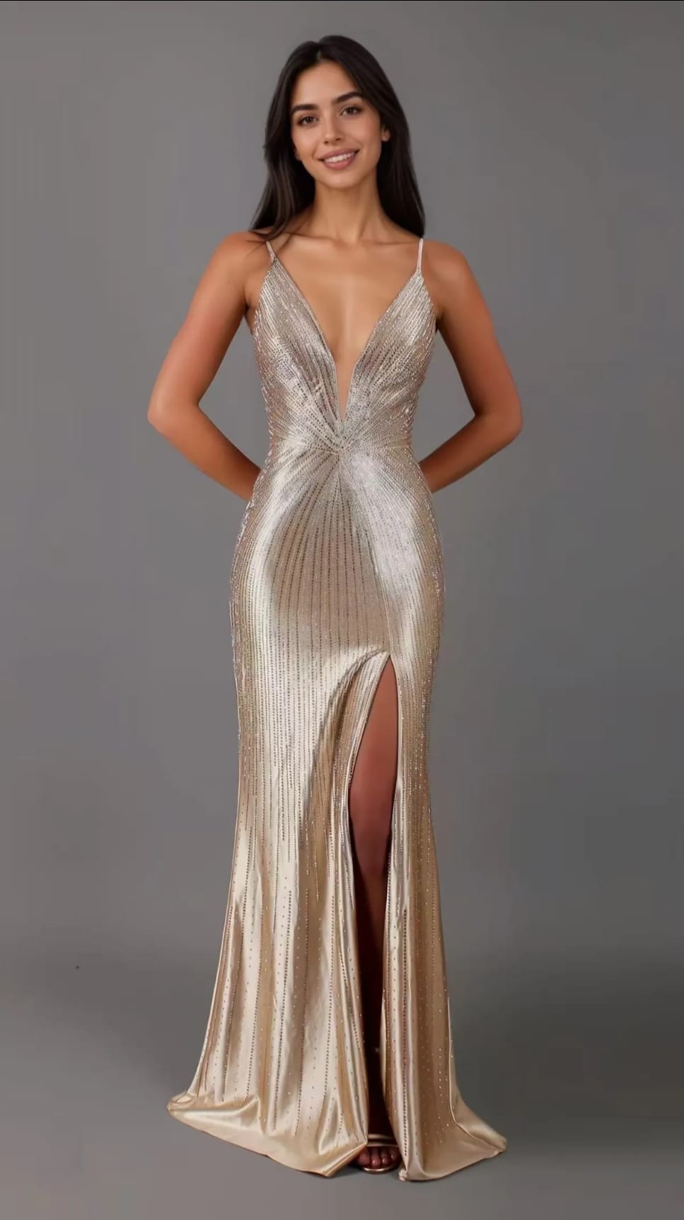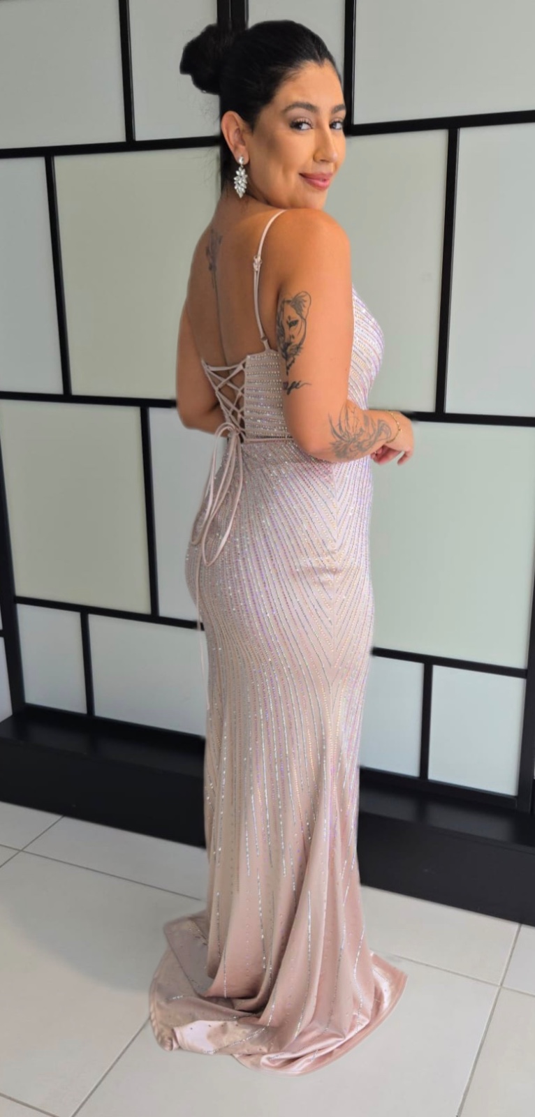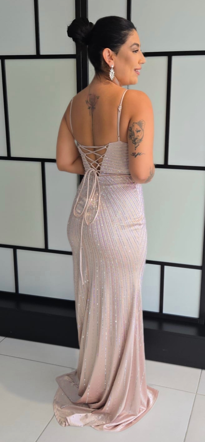 Vestido Marisa Mole de strass aberto na lateral e cruzado nas costas