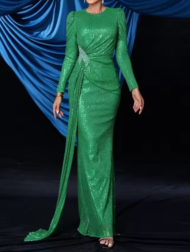 Vestido Marisa Mole de lantejoulas c/brilho e cauda lateral