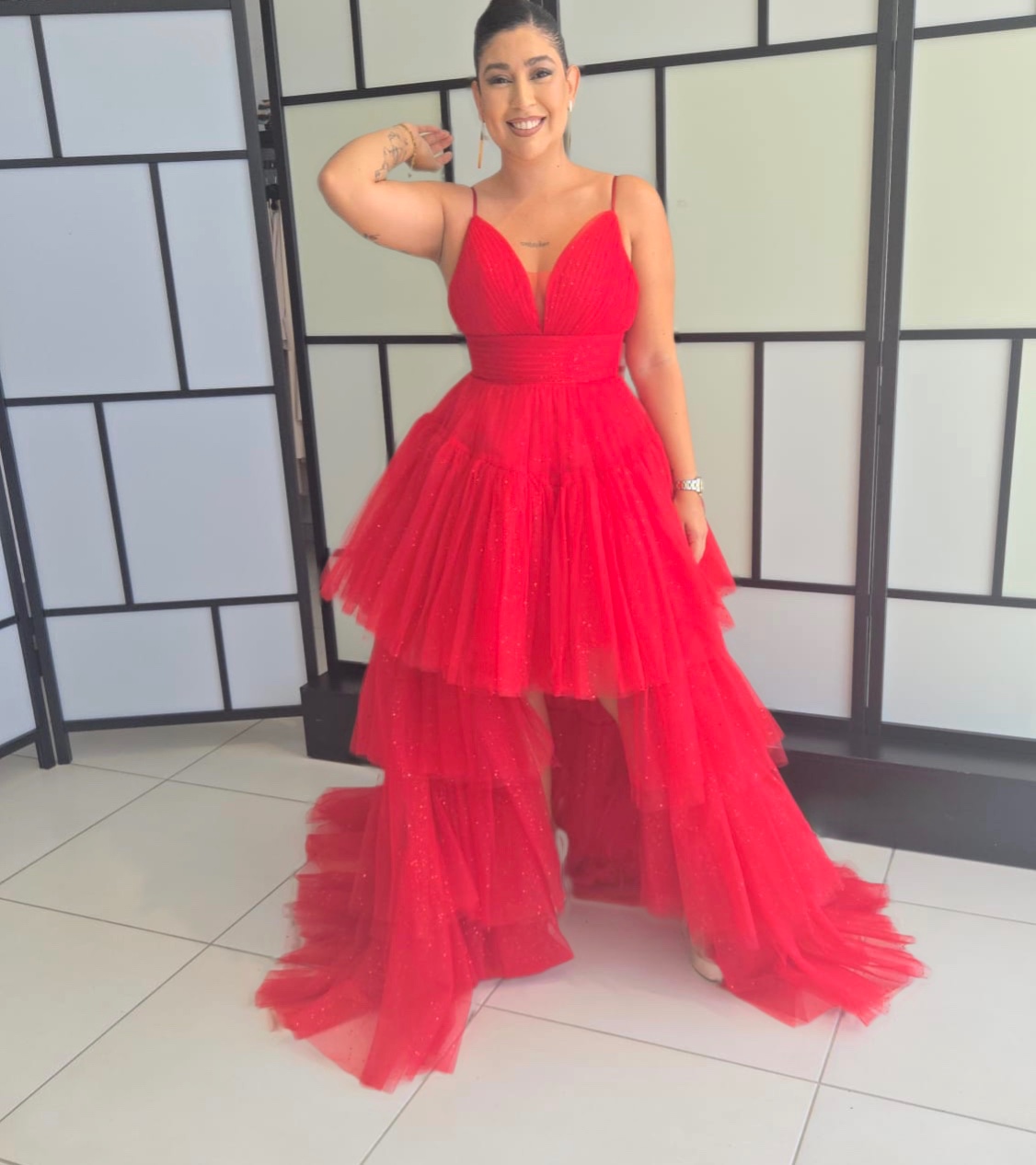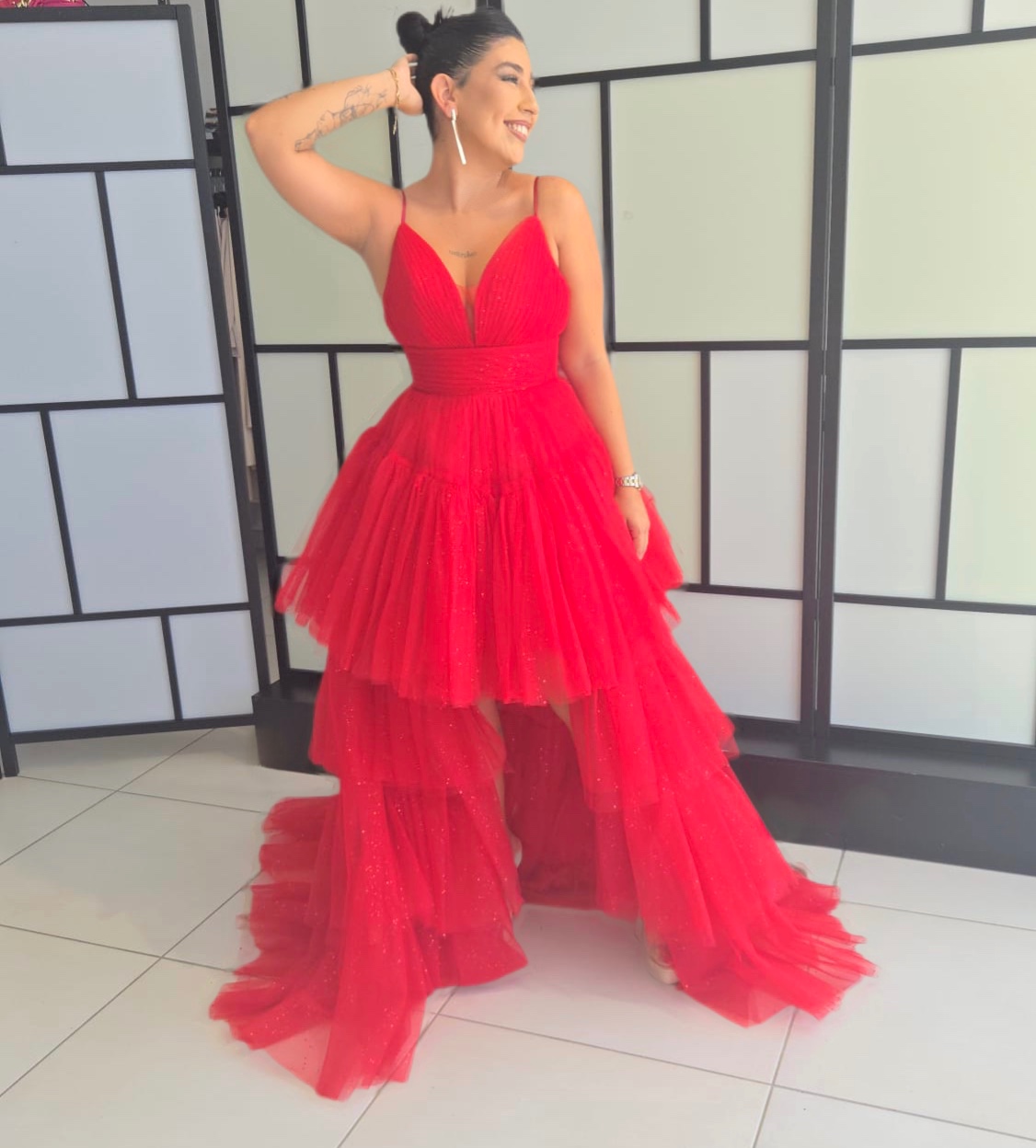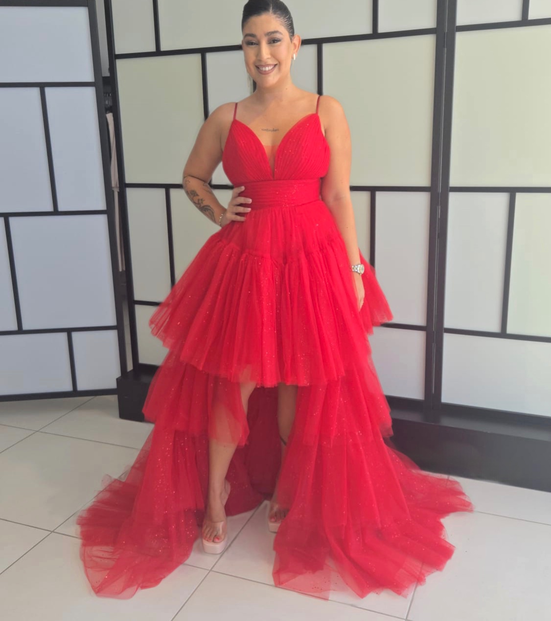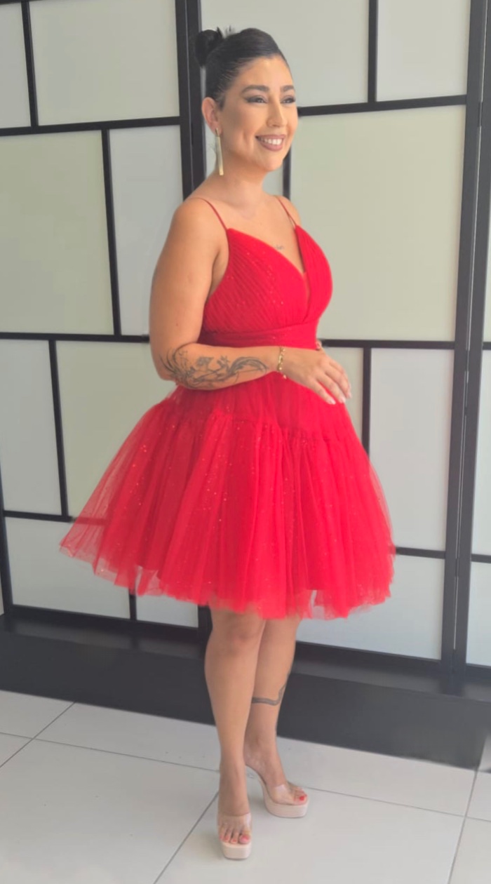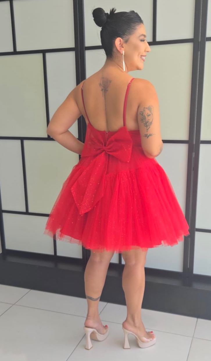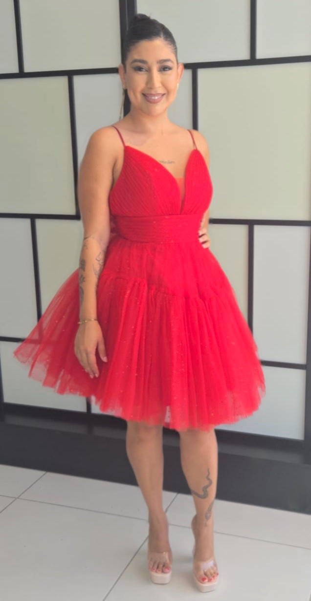 Vestido Marisa Mole tule estruturado saia amovível e alça regulável