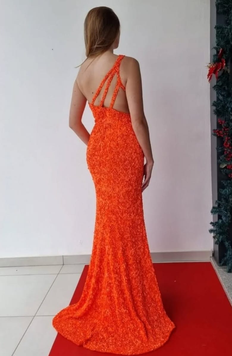 Vestido Marisa Mole de lantejoulas sobrepostas justo abertura na lateral e nas costas