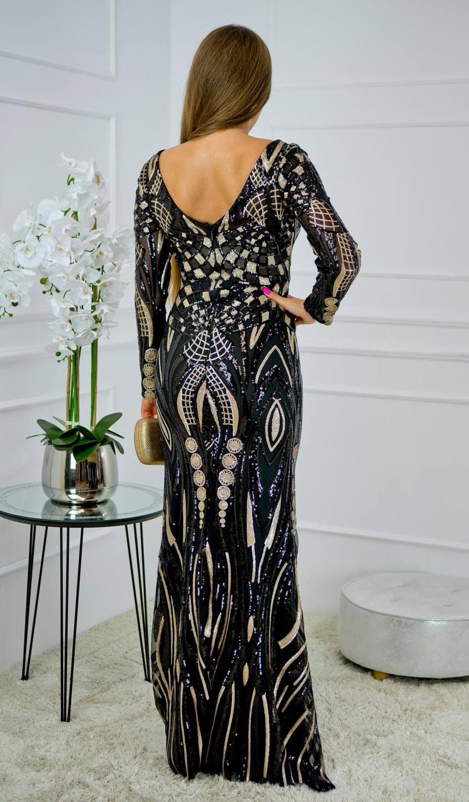 Vestido Marisa Mole de lantejoulas manga comprida e peito c/lantejoulas