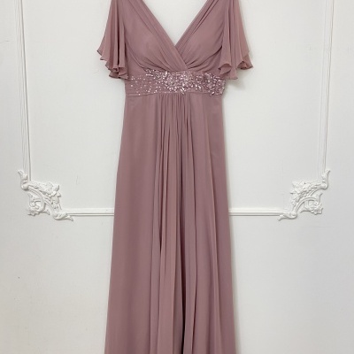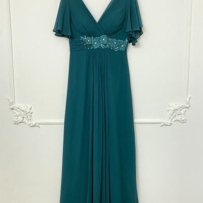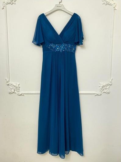 Vestido Marisa Mole trespassado no peito c/bordado floral e brilhantes na cintura
