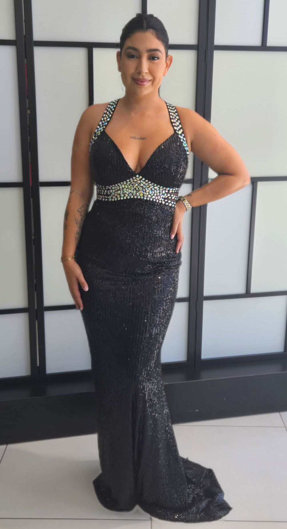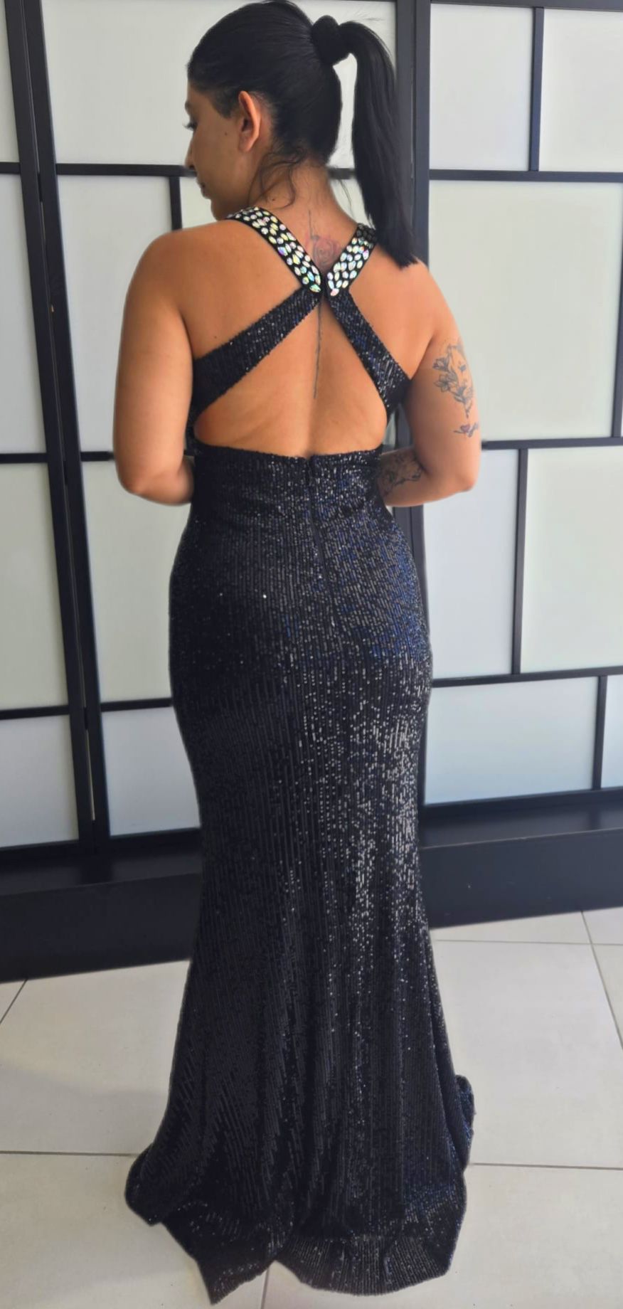 Vestido Marisa Mole de lantejoulas e pedrarias furta cor nas alças e cintura