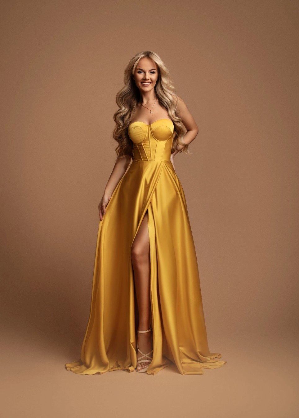 Vestido Marisa Mole cetim c/corpete alça amovível e fenda