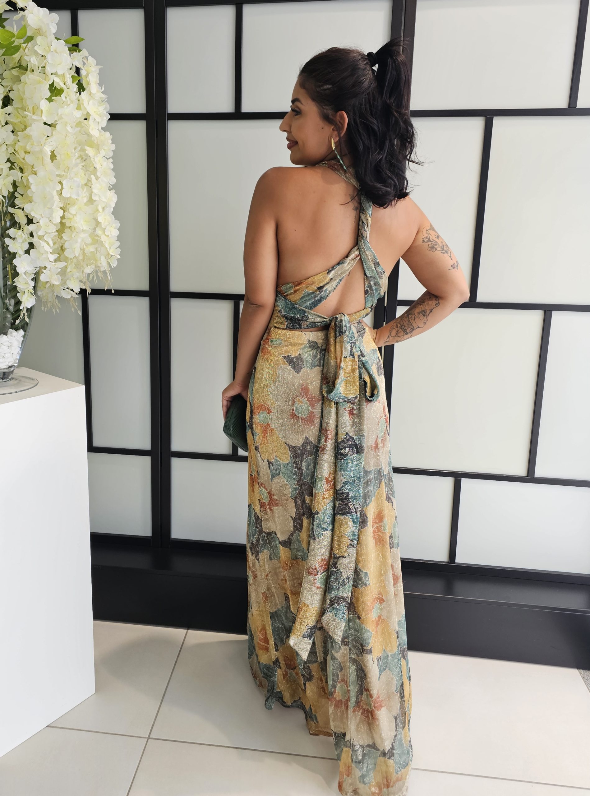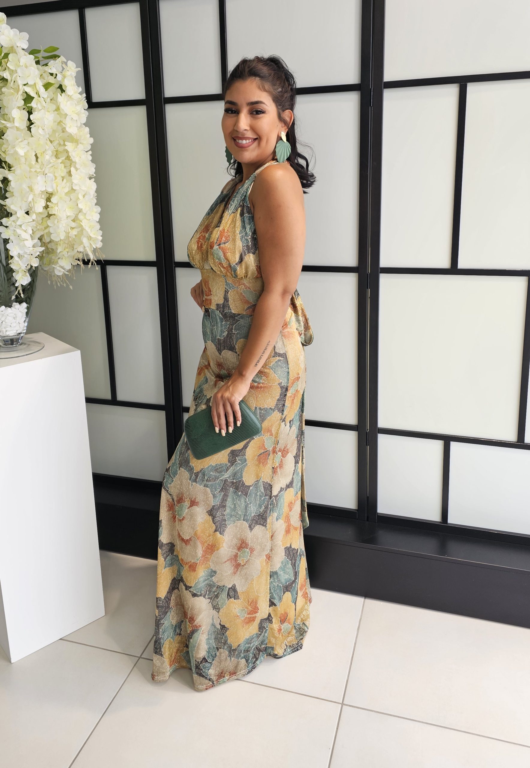 Vestido Marisa Mole costas abertas estampado com brilho ligeiro
