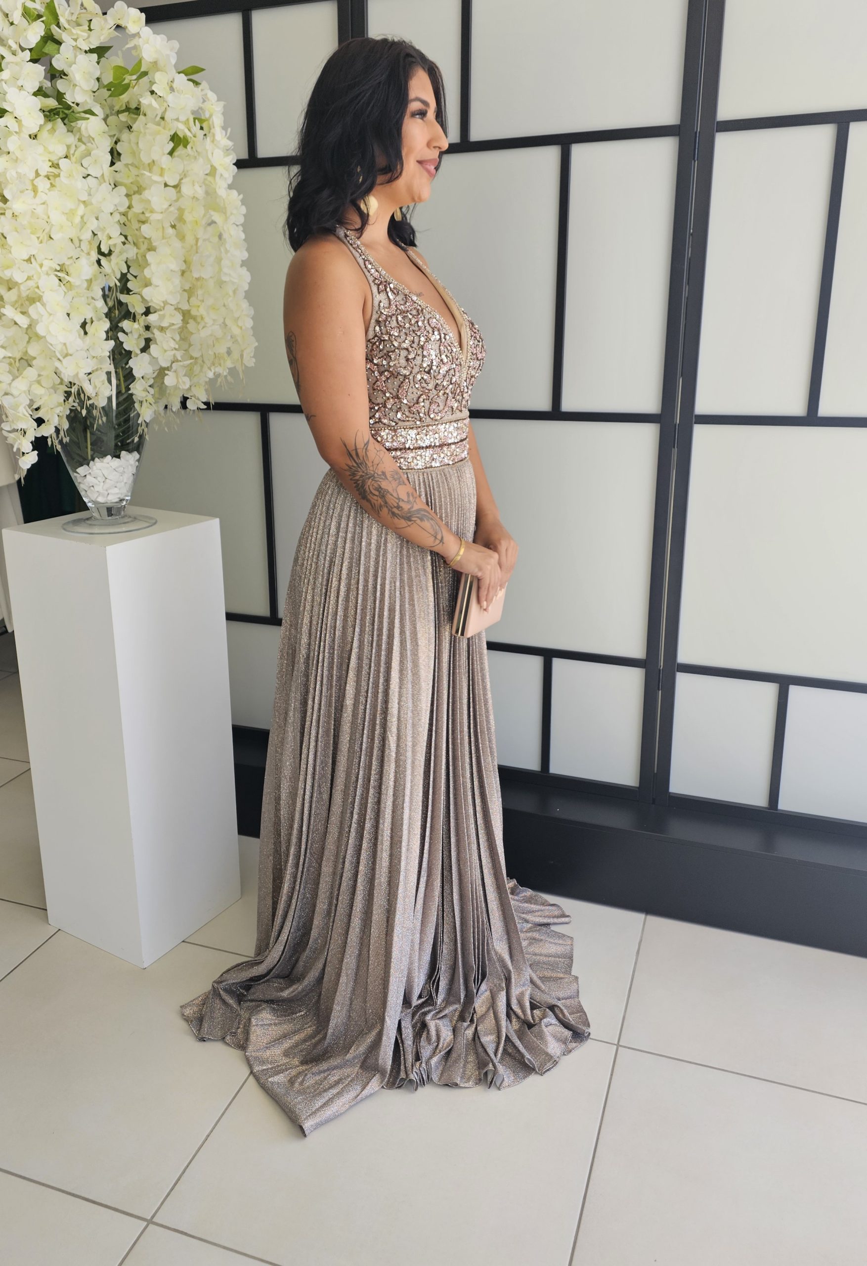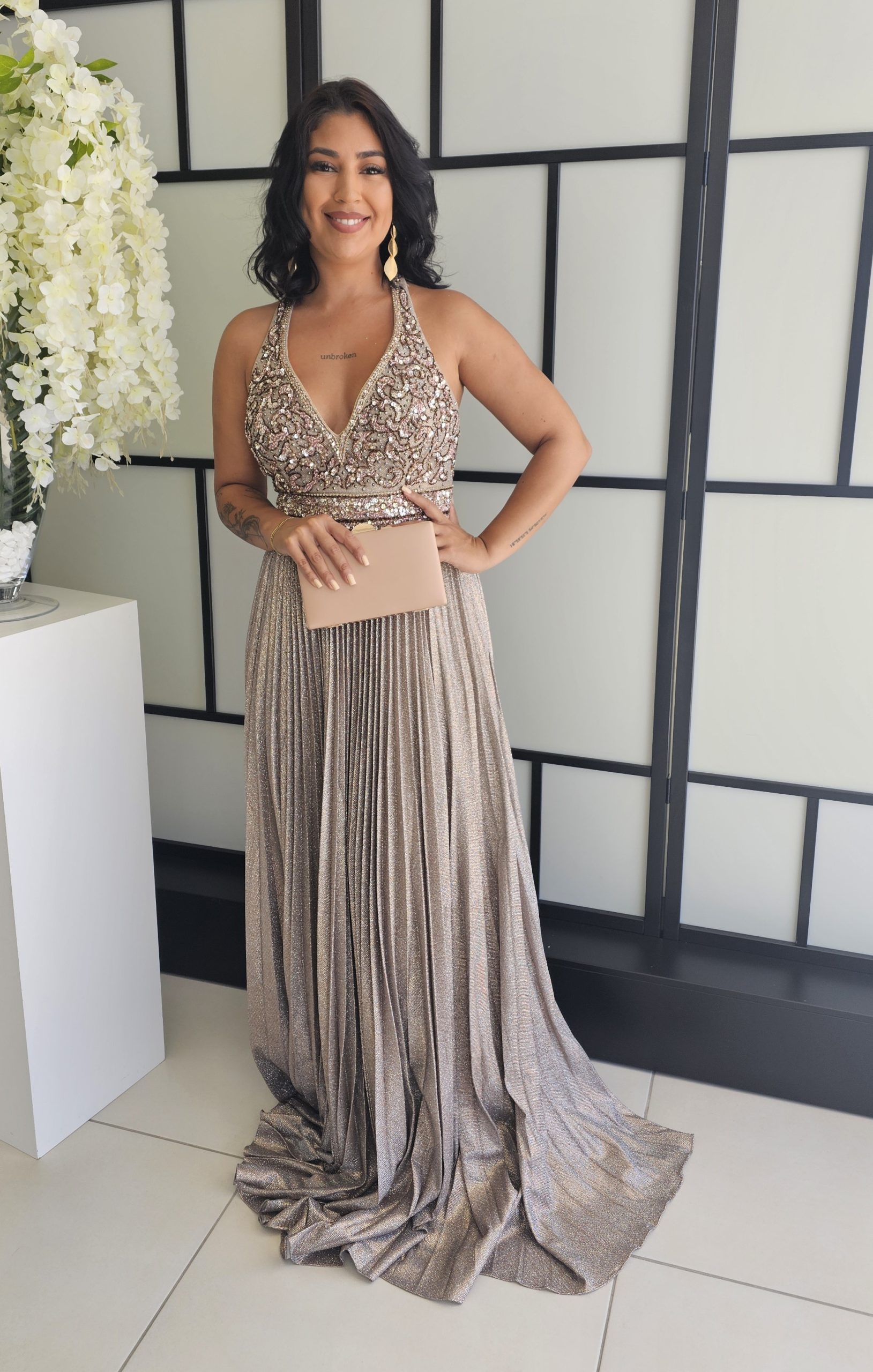 Vestido Marisa Mole Raquel saia plissada e peito com lantejoulas e missangas