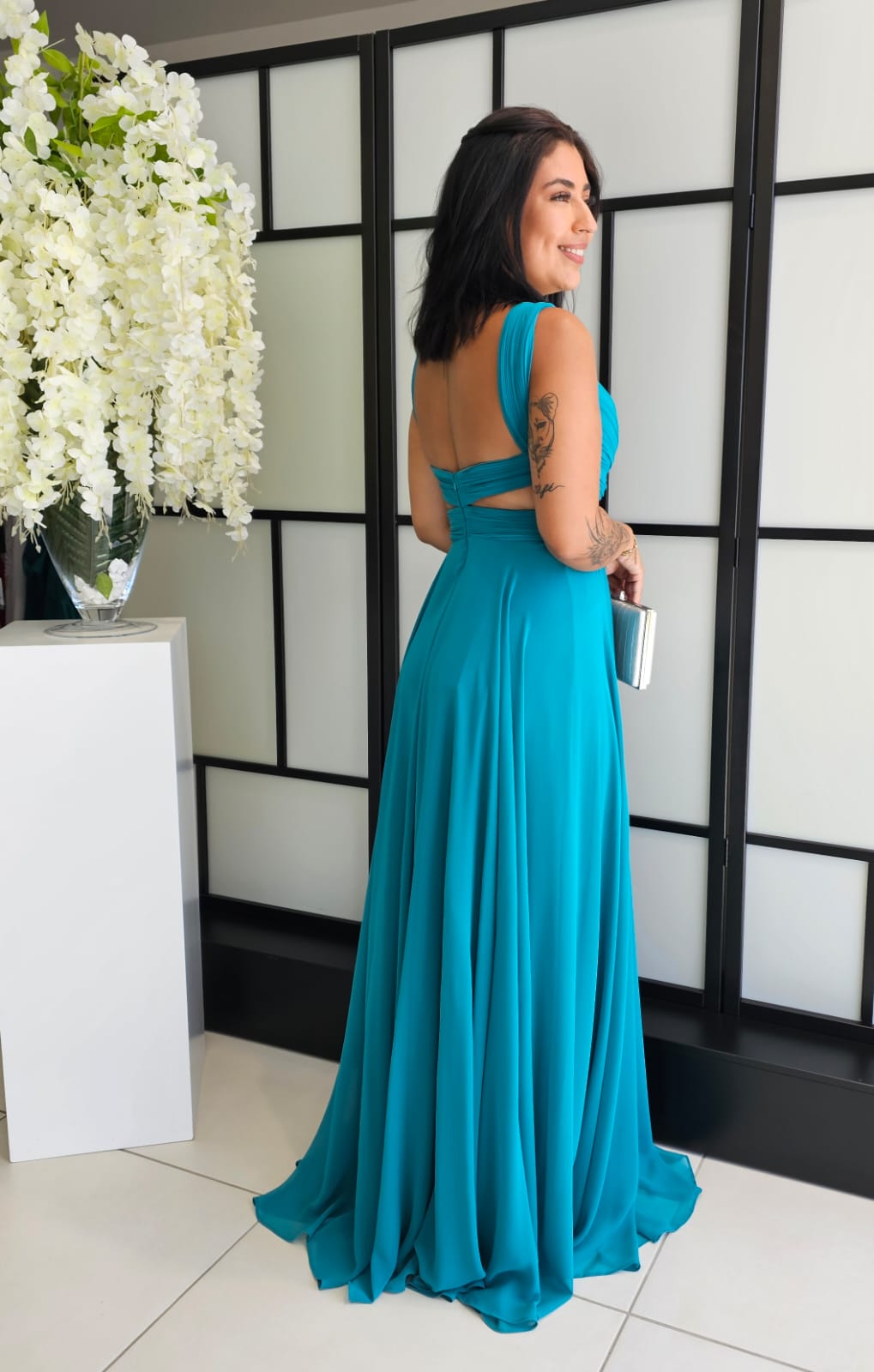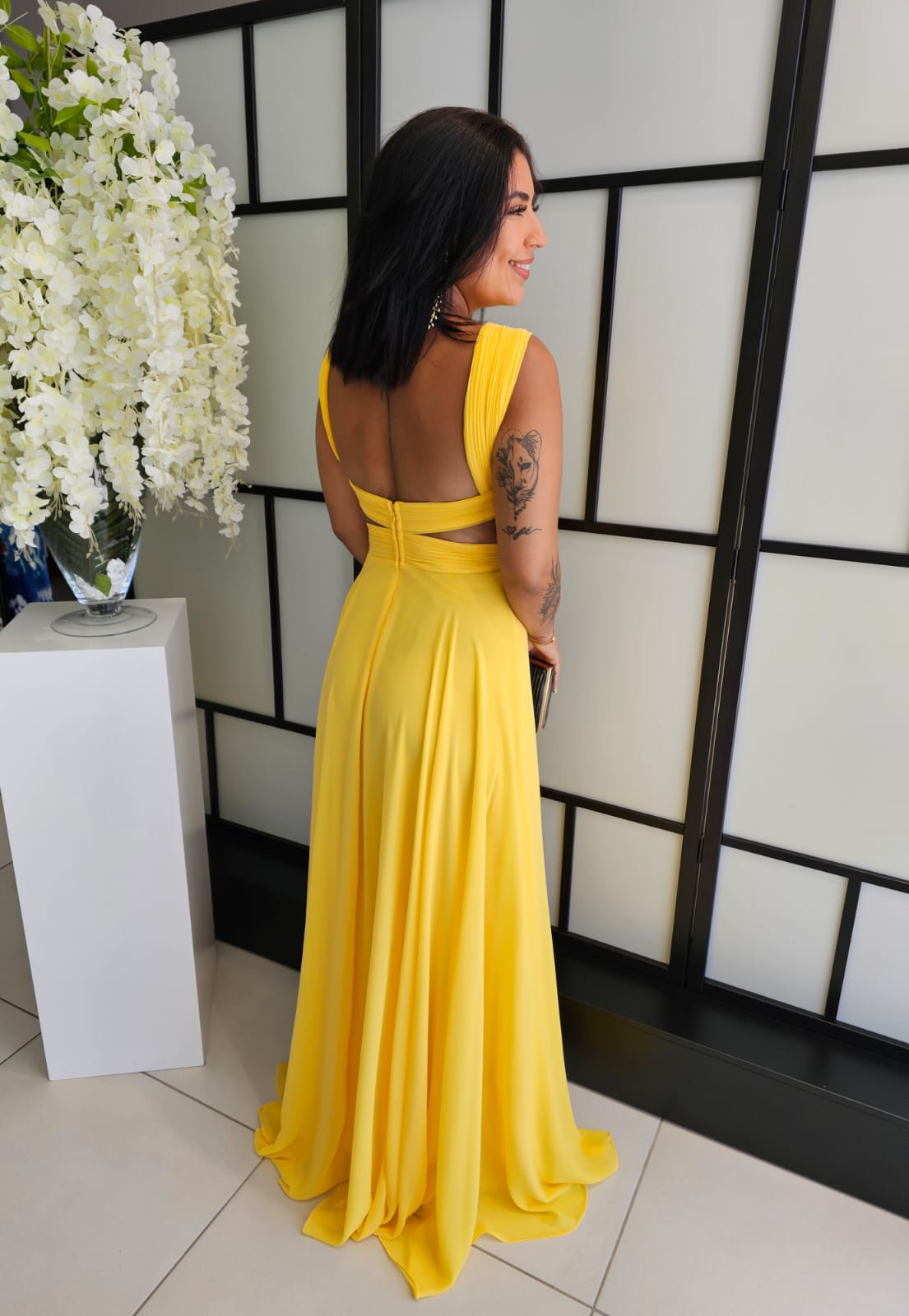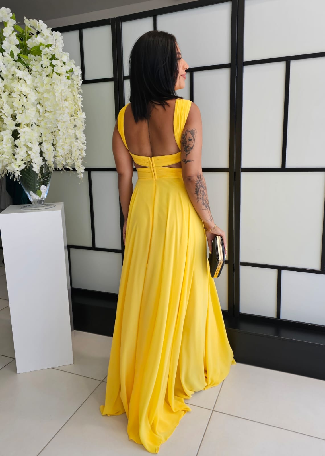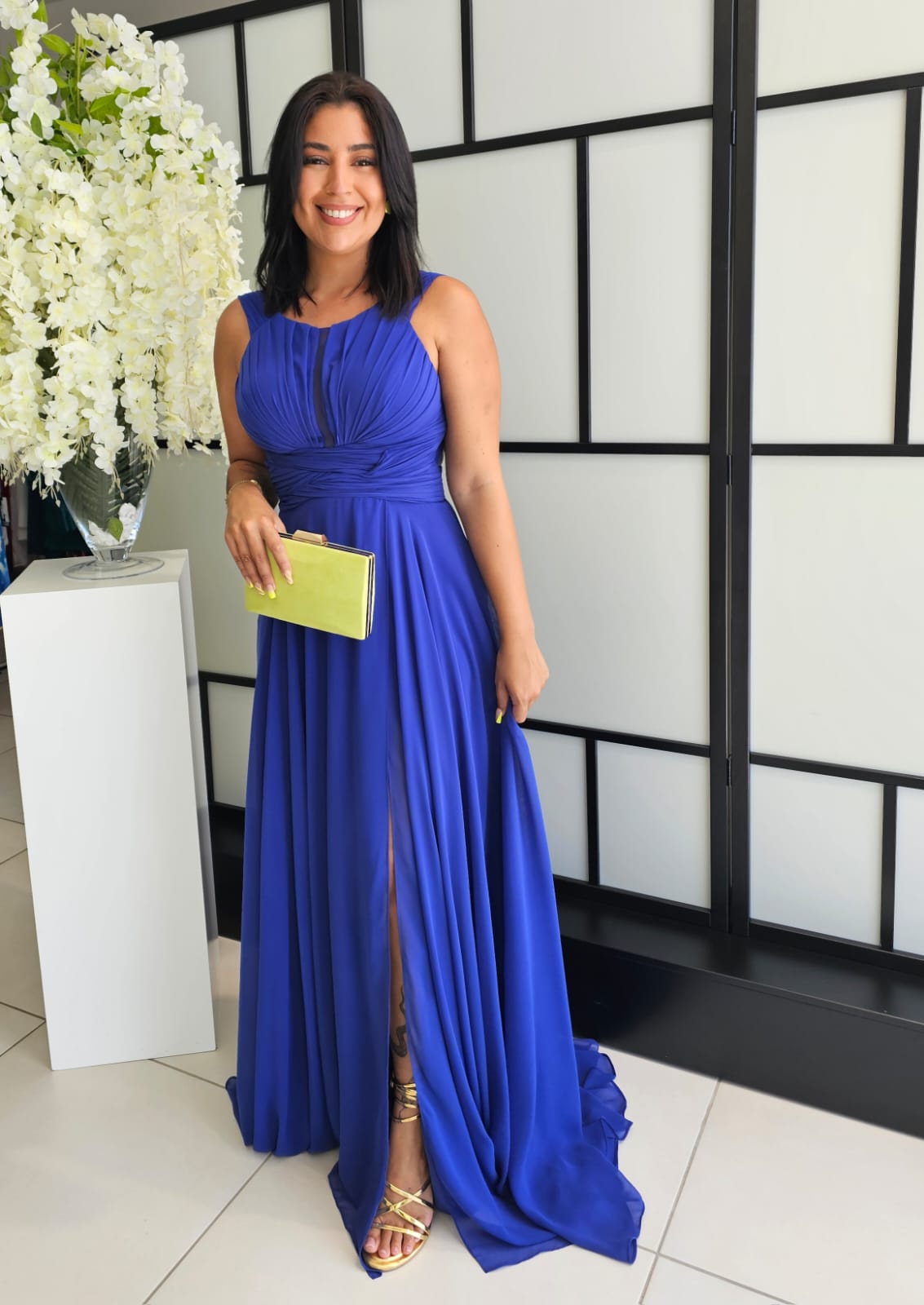 Vestido Marisa Mole transparência no peito, costas abertas e raxa