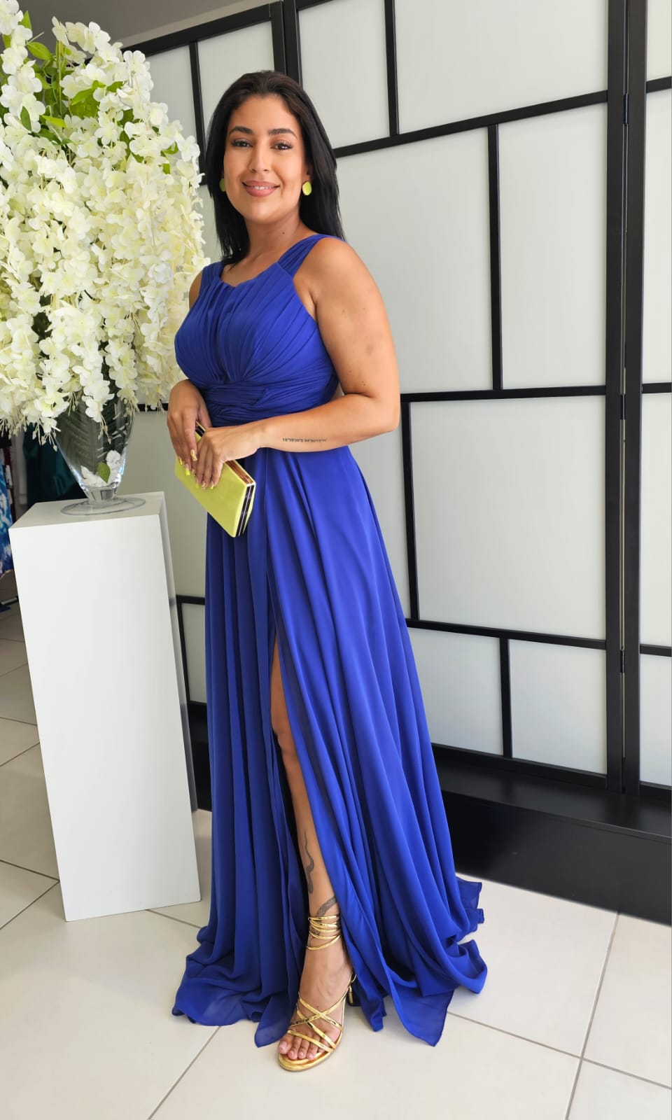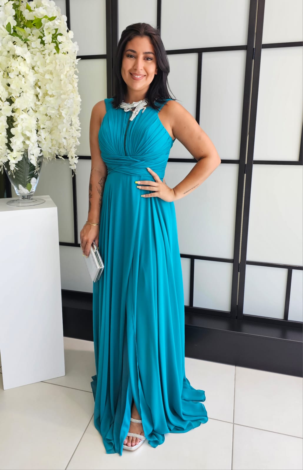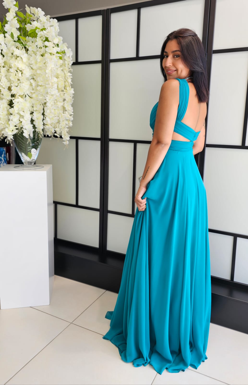 Vestido Marisa Mole transparência no peito, costas abertas e raxa