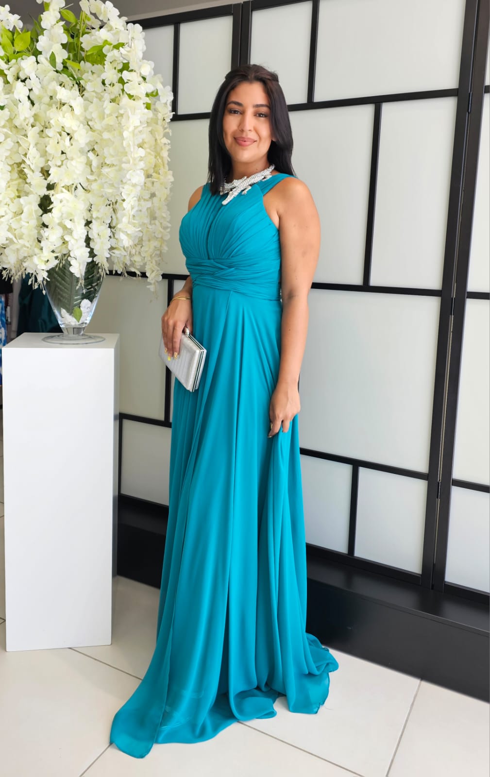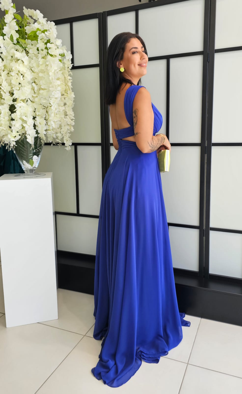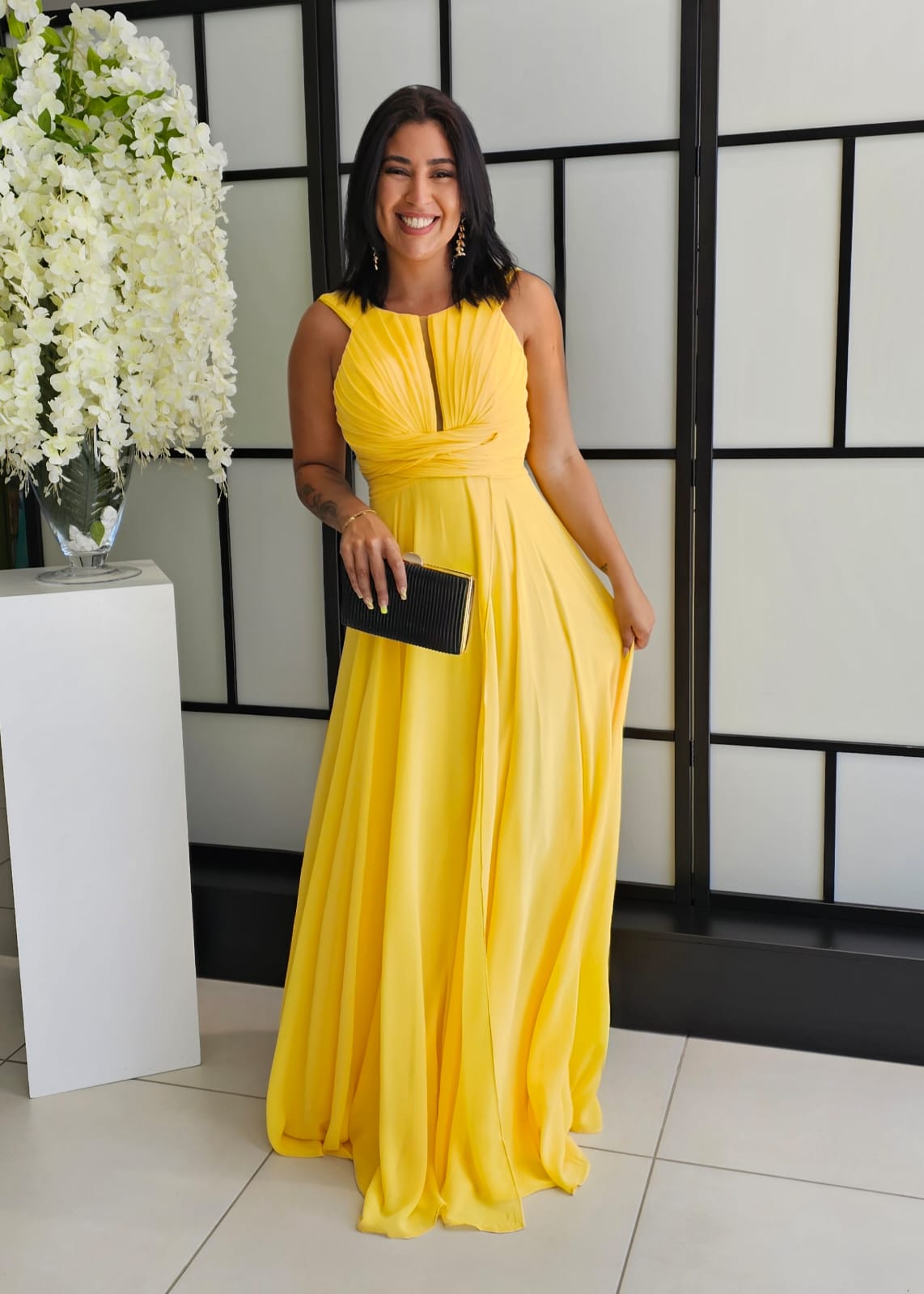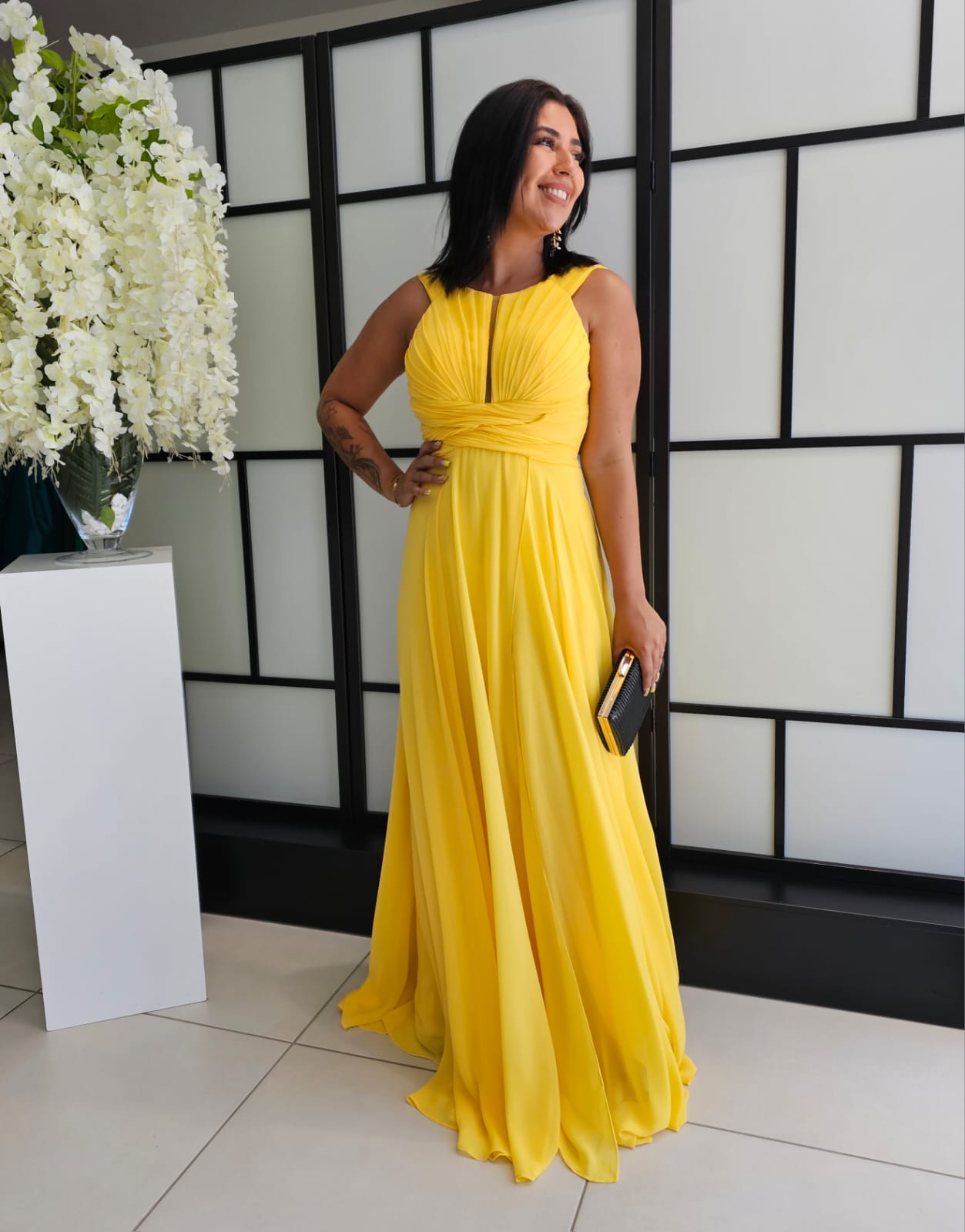 Vestido Marisa Mole transparência no peito, costas abertas e raxa