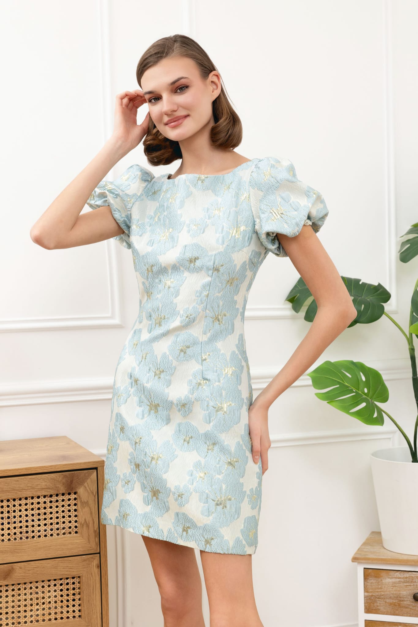 Vestido Marisa Mole texturizado forrado c/ mangas curtas abalonadas