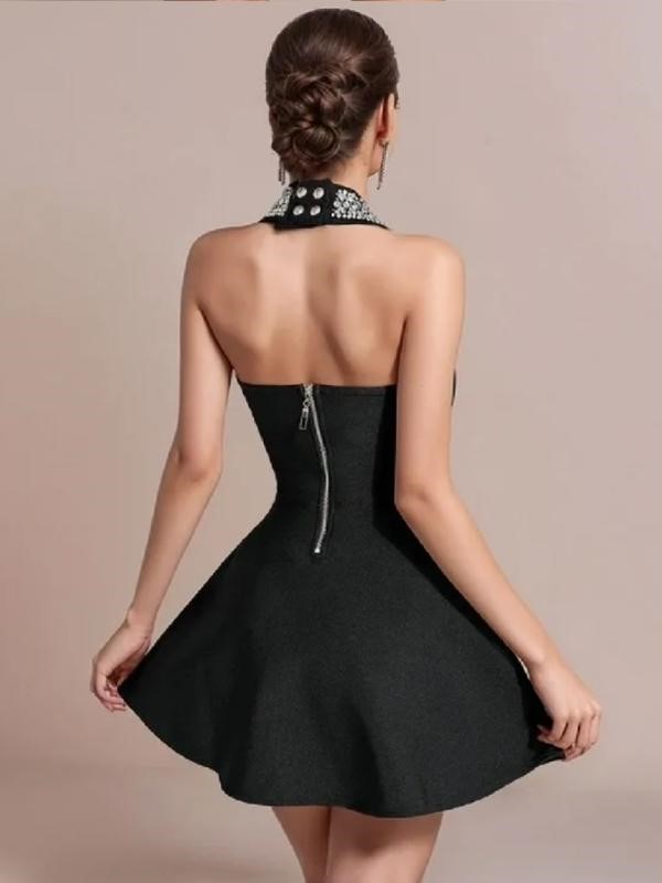 Vestido Marisa Mole em malha quente botões e aplicações brilhantes