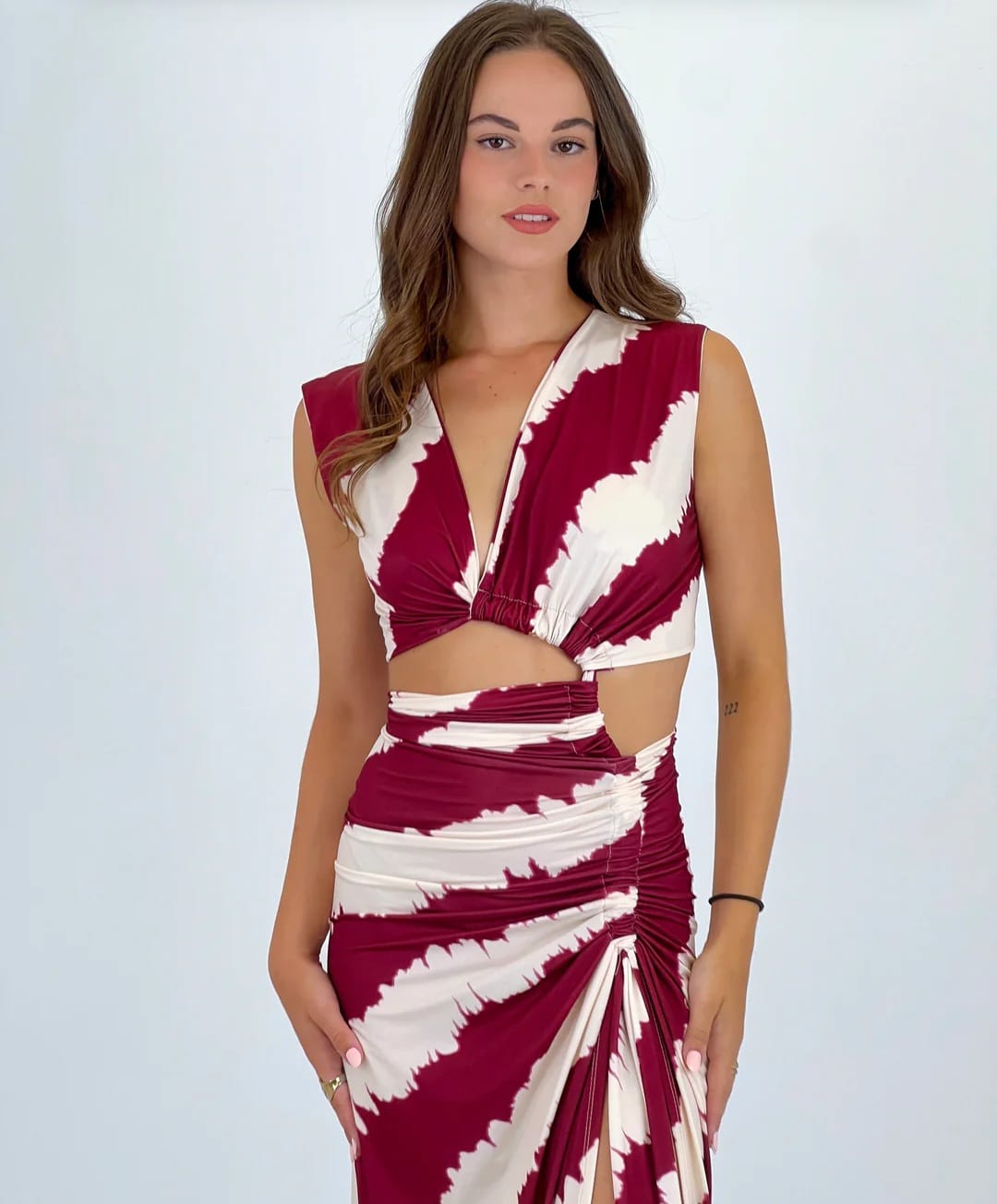 Vestido Marisa Mole cavado de licra decote em V c/aberturas na cintura, costas e lateral da saia